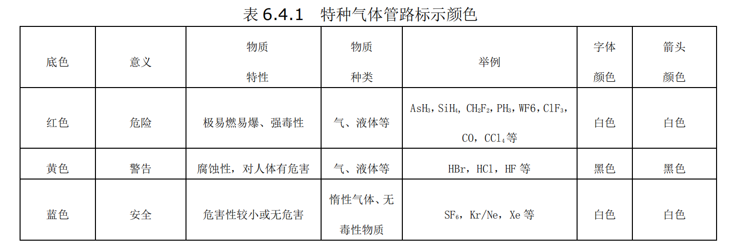 特种气体管路标识要求: